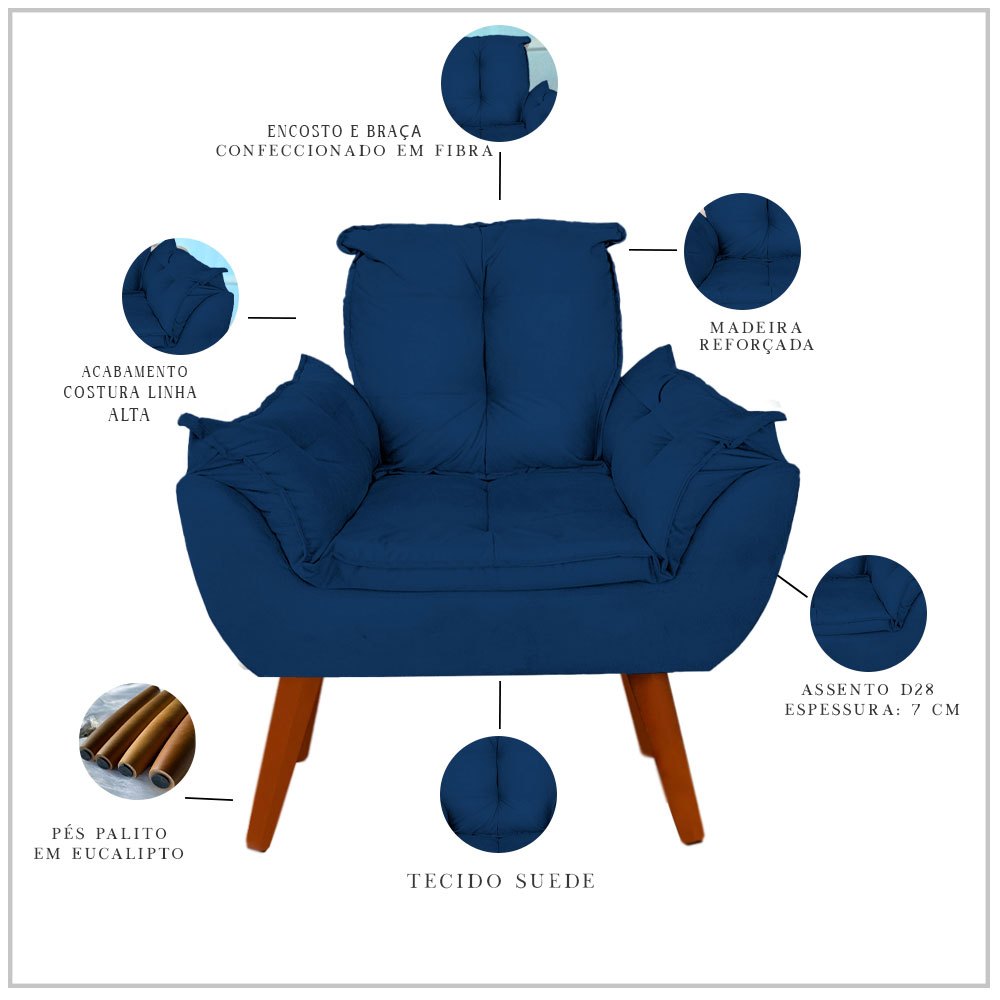 Kit Decorativo 2 Poltronas Opala + 01 Poof Puff Apoio Para Pés Suede Várias Cores