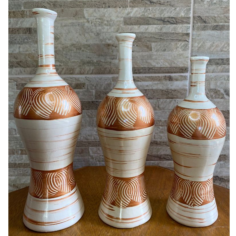 Kit Decorativo Enfeite Luxo Sala Decoração Mesa Cerâmica Trio de Vasos - Julia