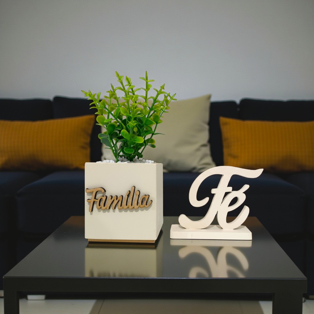 Kit Vasinho Decorativo + Letreiro – MDF Premium 6mm Transforme qualquer cantinho da sua casa com este kit decorativo exclusivo, composto por um vasinho artesanal de MDF com plantinha artificial fixa e um letreiro em MDF com a palavra Fé. Ideal para sala, mesa, escritório, quarto, nichos, estantes, presente criativo, decoração minimalista e ambientes modernos. Características principais Vasinho em MDF 6mm – acabamento resistente e elegante Plantinha artificial fixa – não cai e não faz sujeira Pedrinhas decorativas coladas – mais firmeza e beleza Letreiro “Fé” em MDF – pintura impecável Tamanho total com a planta: 12 cm de altura x 8 cm de largura Você vai receber 01 Vasinho decorativo com plantinha( Escolha) Família /Linho 1 Letreiro com a palavra ( Escolha) Fé /Amor Diferenciais Produto artesanal Perfeito para decorar ambientes pequenos Ótimo para presentear Combina com estilo moderno, clean, minimalista e religioso Envio rápido após a confirmação do pagamento Decoração casa / vasinho MDF / vaso decorativo pequeno / presente criativo / decoração moderna / nicho / estante / fé decoração / letreiro MDF / plantinha artificial / decoração minimalista / kit decorativo / presente religioso / mimo para casa / arte em MDF / decoração barata / enfeite para escritório.