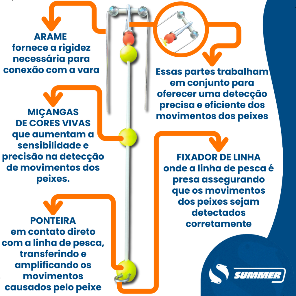 Kit Dedo Duro Pesca Ponteira Inteligente Com Arame 3 Miçangas - Summer Cartela 5 Unidades Tilápia Piau Pesqueiros Varas