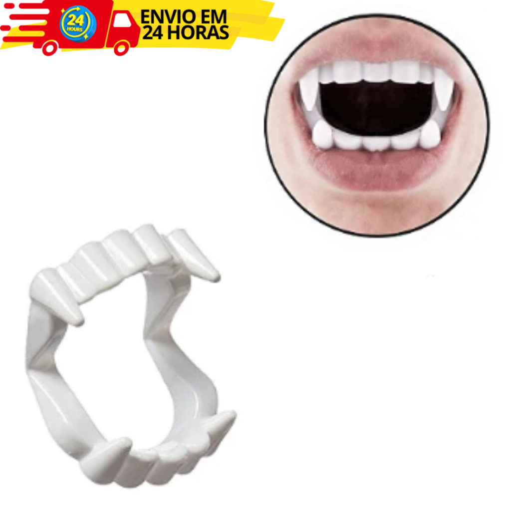 Kit Dentaduras De Vampiro Dentes Brancos Para Fantasia Adulto E Infantil