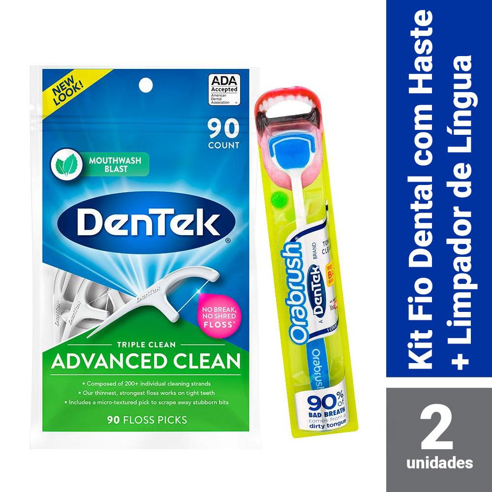 Kit DenTek Escova de Língua Orabrush + Fio Dental Floss Picks Triple Clean Adv c/ 90 un