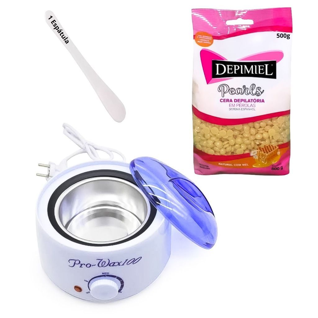 | Kit Depilação Cera Quente Depimiel 500g + Espátula + Panela Aquecedora este produto | R$ 81,45 | — | 4.9/5 | — |