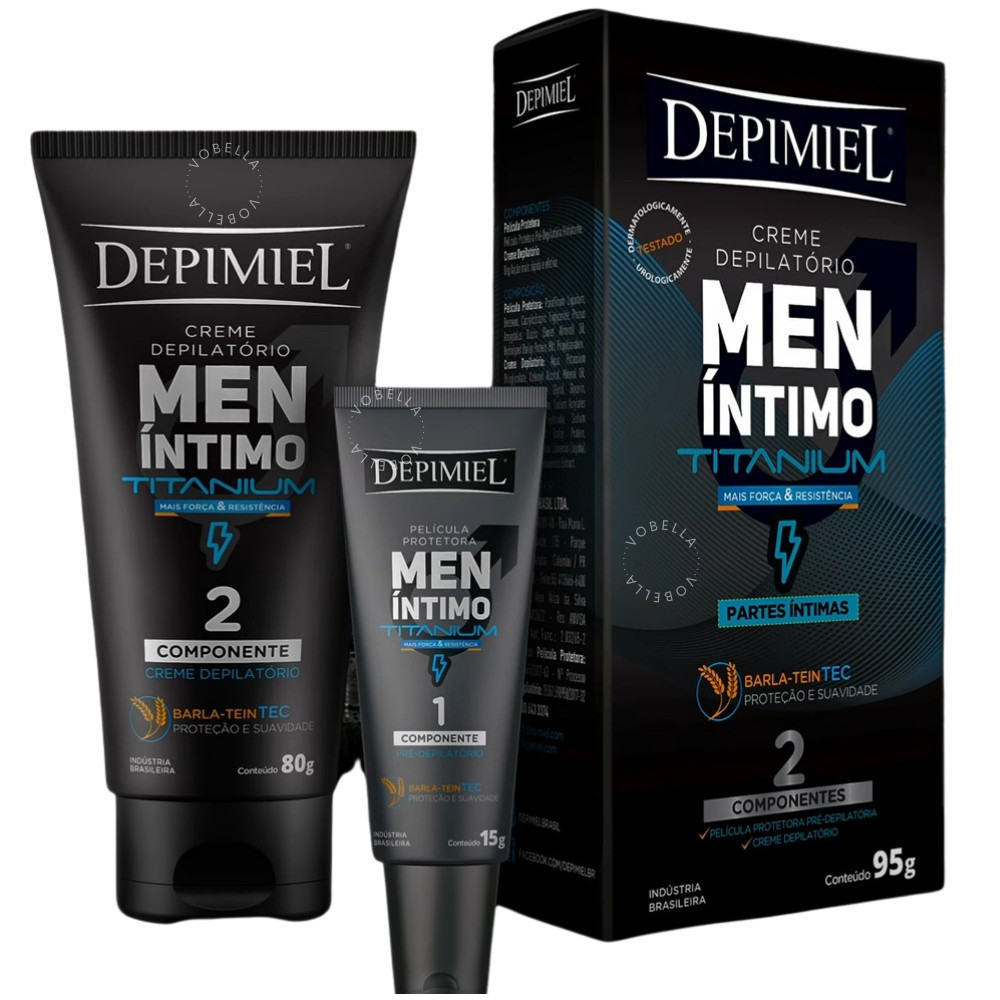 Oii, é um prazer ter você aqui! Você está cansado de usar métodos desconfortáveis e agressivos para depilar? O Kit Depilação Depimiel Masculino Men Corpo + Partes Íntimas é a solução ideal para quem busca praticidade, conforto e segurança na depilação masculina. Desenvolvido especialmente para a pele sensível da região íntima, ele oferece uma depilação eficiente sem causar irritações. Não perca mais tempo com métodos dolorosos! O que ela é: - Kit Depilação Masculino Men Corpo + Partes Íntimas. - Marca: Depimiel. - Testado Dermatologicamente. O que ela tem: - 1 Creme Depilatória Men Partes Intimas Masculino 95g. - 1 Creme Depilatória Men Corporal Masculino Homem 120g. - Extrato de Aloe Vera. - Ingredientes que proporcionam ação rápida e eficaz, removendo os pelos sem dor. O que ela faz: - Hidrata. - Suaviza a pele. - Revitaliza a pele. - Ameniza a dor e o vermelhidão. Área de uso: - Corporal. - Partes íntimas. Como usar: - Com a área a ser depilada estando limpa e seca, aplique uma camada uniforme de creme suficiente para cobrir os pelos. - Deixe o creme agir por 5 minutos. - Após o tempo, retire o creme de uma pequena área com uma esponja ou espátula. Se o pelo sair facilmente tire completamente sem esfregar a pele. - Caso não saia, deixe agir por mais alguns minutos. O tempo total de aplicação não pode ultrapassar 10 minutos. - Após a remoção do creme lave a área depilada com água fria em abundância e seque-a suavemente. Não friccione. IMPORTANTE: - Não é recomendado para gestantes, crianças, idosos, ou após cirurgias. - Antes de utilizar o Creme Depilatório Depimiel, realize o teste de sensibilidade descrito na embalagem. Garanta o seu e experimente o cuidado que a sua pele merece! Surgiu alguma dúvida? Entre em contato com a gente! Boas Compras :)