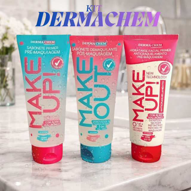 Kit Dermachem Make Up 4 Itens Sabonete Pré Pós Maquiagem + Hidratante + Demaquilante