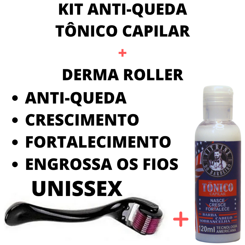 Kit Dermaroller + Tônico Capilar Unissex Para Crescimento do Cabelo Evita Queda