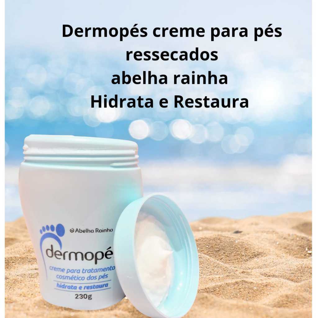 Descrição Você receberá: 1 Creme para afinar os pés Dermopés Abelha Rainha 230g 1 Dermopés Creme Hidrata e Restaura Abelha Rainha 230g 1 Loção para Afinar os pés Milagre dos pés Dermopés Abelha Rainha 30ml A New Leaf Shop trabalha diretamente com vendas online, atendendo seus clientes com carinho e qualidade. Nossos produtos são originais e lacrados garantindo a sua segurança. Temos produtos a pronta entrega e enviamos em até 24h úteis após a confirmação de pagamento. Emitimos Nota Fiscal em nome do cliente. Princípios ativos: Uréia: Hidrata e aumenta a elasticidade da pele. Alfa Hidroxi Ácidos: Promove a renovação celular e mantém a hidratação da pele. Composição: Hidrata e Afina: stearyl alcohol, cetearyl alcohol, polysorbate, peg 20 stearate, glyceryl stearate, cetyl palmitate, phenoxyethanol e parabenos, propylene glycol, urea, paraffinum liquidum, lactic acid, parfum, aqua, Hidrata e Restaura: aqua, cetearyl alcohol, urea, lactic acid, propylene glycol, mineral oil, cetyl palmitate, polysorbate 60, pega-20 stearate, glyceryl stearate, parfum, phenoxyethanol, parabenos, triclosan, coumarin, alpha-isomethyl ionone, limonene, eugenol, geraniol, hexyl cinnamal, isoeugenol, buthyl phenyl methyl propional, linalool. Loção: aqua, glycerin, cetearyl alcohol, behentrimonium methosulfate, salicylic acid, allantoin, hydrogen poroxide, alcohol, camphor, propylene glycol, phenoxyethanol, methylparaben, ethylparaben, propylparaben, butylparaben, isobutylparaben. Modo de usar: Aplicar nos pés limpos e secos, fazendo uma delicada massagem. Restrições: Não aplicar sobre a pele irritada ou ferida. Não utilizar durante a gravidez. Evite contato com os olhos. Caso ocorra, lave-os com água em abundância. Havendo irritação suspenda o uso. Cuidados: Manter em local seco e fresco. Manter fora do alcance de crianças e animais domésticos.