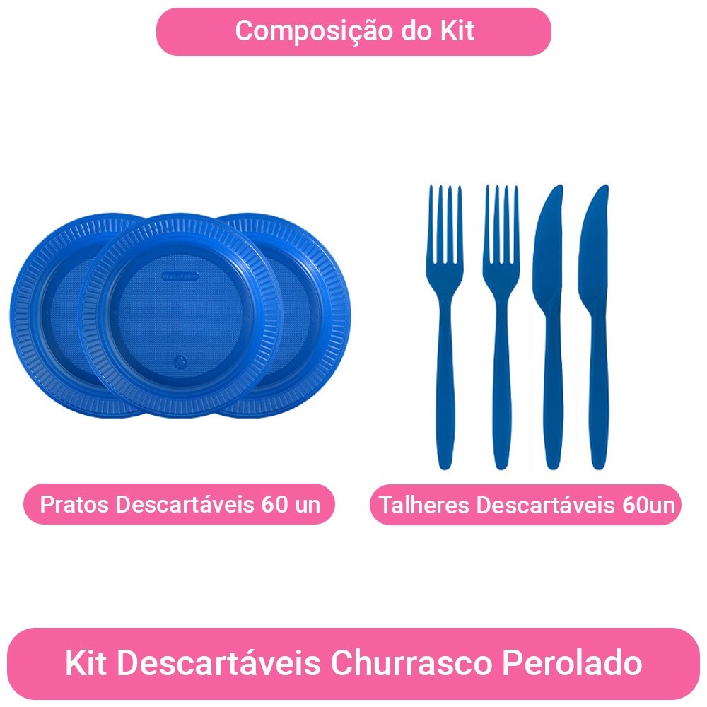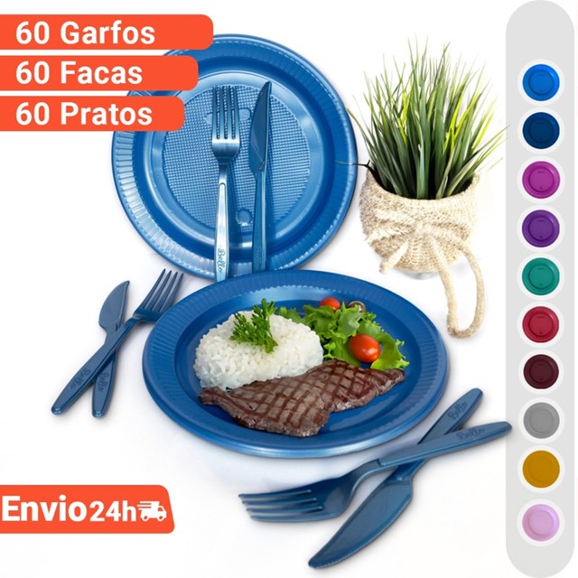 kit Descartáveis Churrasco Talheres e Prato Refeição luxo 60pçs - Cores Padronizadas e Exclusivas