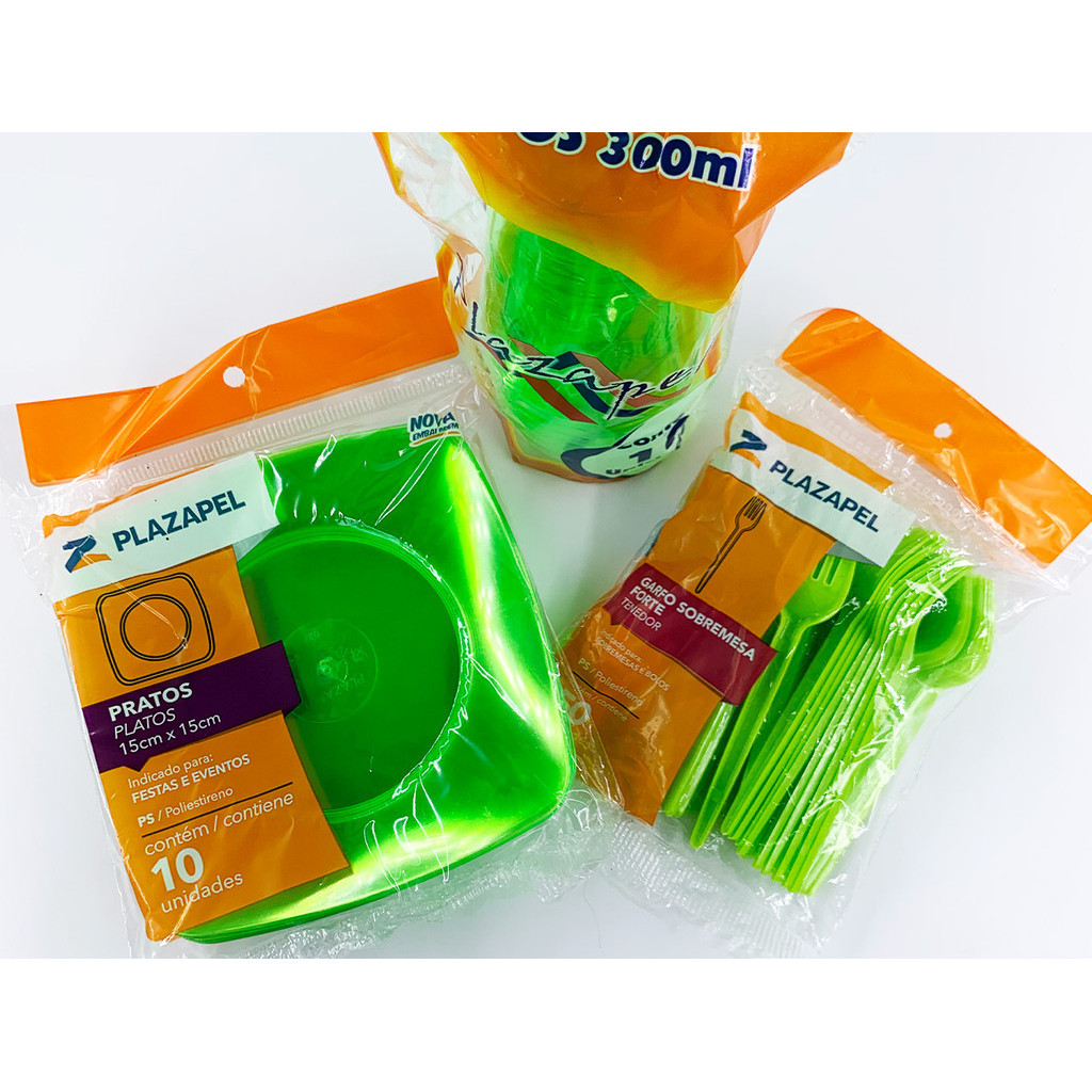 KIT FESTA DE ANIVERSÁRIO - 50 PRATOS, 50 COPOS E 50 GARFINHOS - MATERIAL RÍGIDO/ACRÍLICO Kit ideal para sua festa, produtos com acabamentos de extrema qualidade e durabilidade. O produto é fabricado em polipropileno, material que confere alta qualidade e resistência a impactos. Atóxico, este produto pode entrar em contato com os alimentos sem transferir odor ou gosto. Em acrílico descartável resistente para deixar a decoração da sua festa ou evento mais estilosa. Os copos e pratos acrílicos conferem muita praticidade de suas refeições, mas sem perder o charme. POR SUA RESISTÊNCIA É ideal para lanchonetes, shows, festas, aniversários, confraternizações, acampamentos, pescaria, fast-food, food truck e muito mais. A PLAZAPEL possui uma linha completa em descartáveis, entre copos, pratos, talheres e canudos tradicional e biodegradáveis. Características Técnicas: > Embalado em cor única (Escolher a cor no ato da compra) > Produto Atóxico: Sim > Prato/Copo/Garfinho: Poliestireno (PS) Em Alta Resistência > O Kit Contém: - 05 Pacotes C/ 10 Unidades cada - Prato 15x15cm - 05 Pacotes C/ 10 Unidades cada - Copo Refrigerante 300ml - 01 Pacote C/ 50 Unidades - Garfinho Sobremesa Dimensões dos itens: > Prato - 15x15cm > Copo Refrigerante 300ml – A: 11,2cm / Circunferência 7,5cm > Garfinho – A: 12,5cm / Largura 2,2cm - Marca: Plazapel - Garantia: 3 meses contra defeitos de fabricação Vantagens de comprar na Brester: - Nota fiscal para Pessoa Física e Pessoa Jurídica. - Produto original, novo, com garantia de fábrica. - Produto a pronta entrega. - Envio em até 48hs em dias úteis após confirmação do pagamento. Obrigado por escolher a Brester, Loja Oficial.