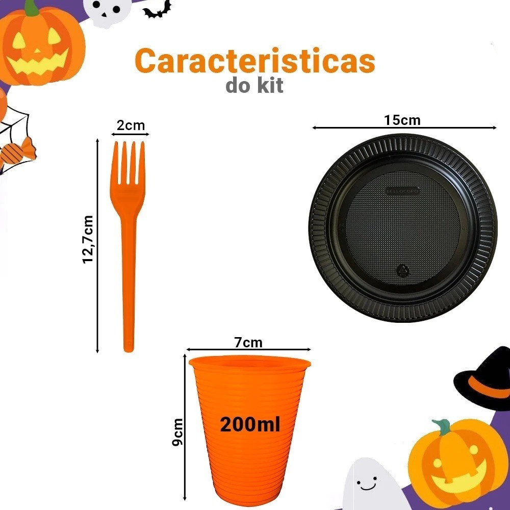 Kit Descartáveis Halloween 50 Pessoas Bellocopo Cores exclusivas e Padronizadas
