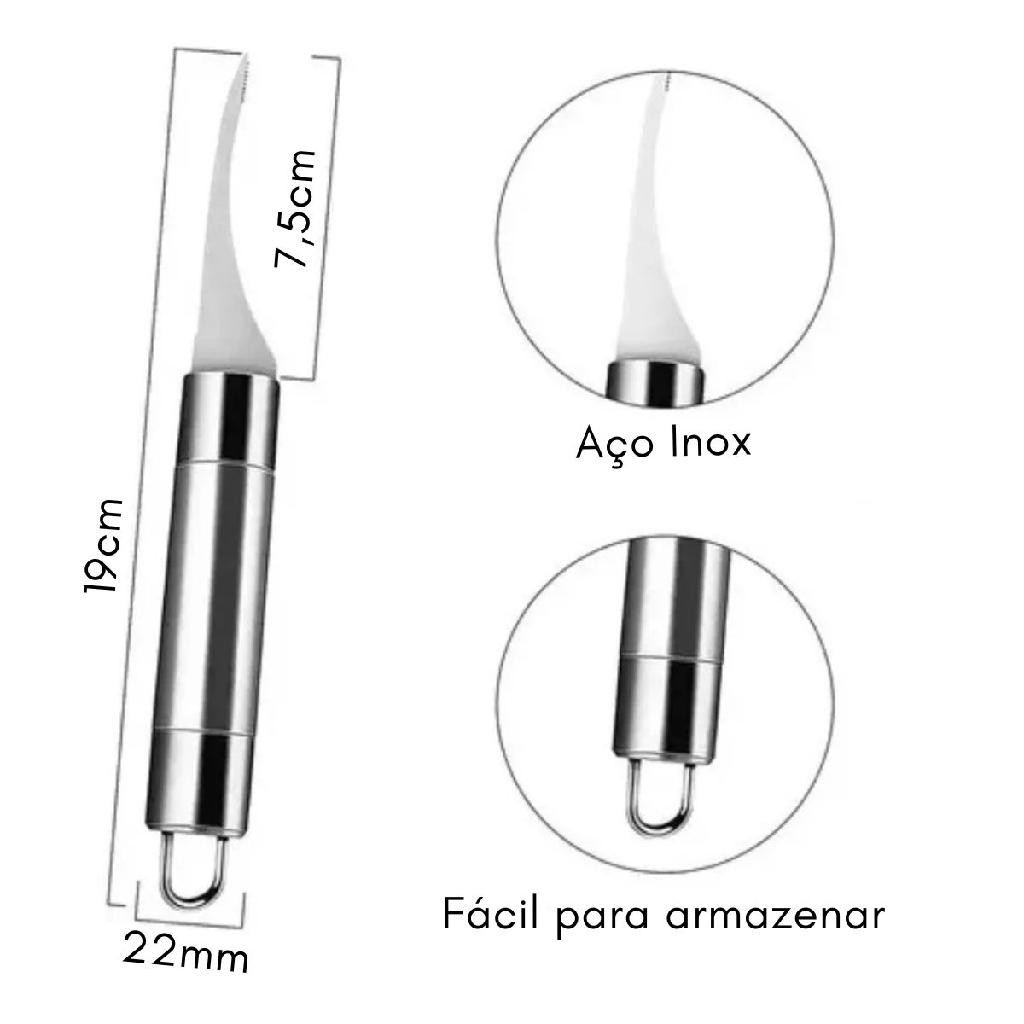 Kit composto por 2 produtos: 1 Limpador Deveiner de camarão tipo alicate. 1 Descascador de camarão faca tira tripa pegar linha meio. Descubra a praticidade e eficiência do Descascar e Limpar Camarão com o conjunto da NilosDecor. O conjunto para limpeza de camarão é fabricado em aço inox, resistente, duradouro e não enferruja, a ponta pontiaguda fornece uma experiência de descascamento precisa e rápida. Características da faca: Com esta faca de limpeza de camarão você pode limpar o camarão de maneira muito mais fácil e em menos tempo, toda em aço inox com aproximadamente 18cm de comprimento total com lâmina de aproximadamente 7cm com ponta bem fina e afiada. Características do descascador tipo alicate: Toda em aço inox, leve e prático, com comprimento total de aproximadamente 20,5cm, ótima empunhadura. Ponta útil com aproximadamente 7,5cm de comprimento. Conteúdo da embalagem: 1 Faca Inox para limpeza e pega de linha do camarão 1 Descascador de camarão tipo alicate em aço inox. ==================================== Garantia de 90 dias para defeitos de fabricação ====================================