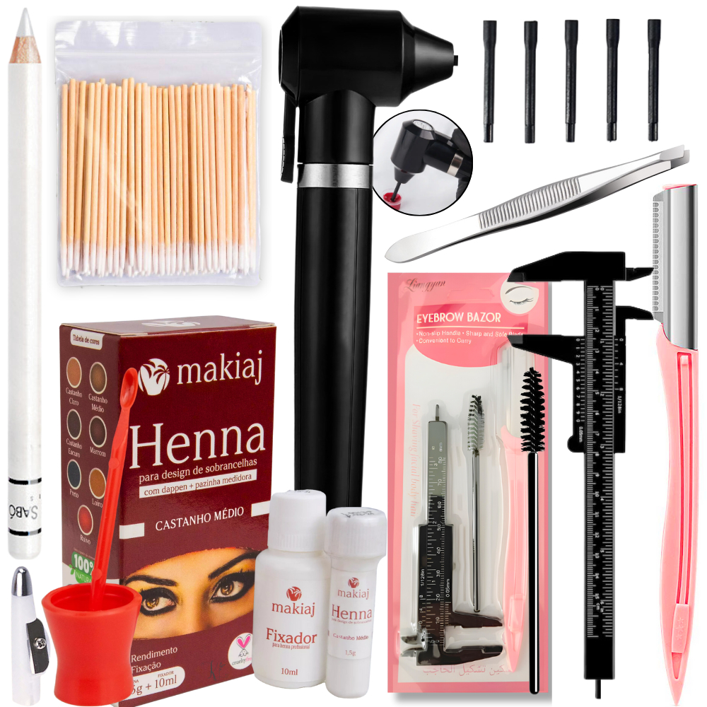 Kit Design de Sobrancelha Makiaj Henna Navalha Pinca Lapis Pincel Paquimetro Kit Sombrancelha