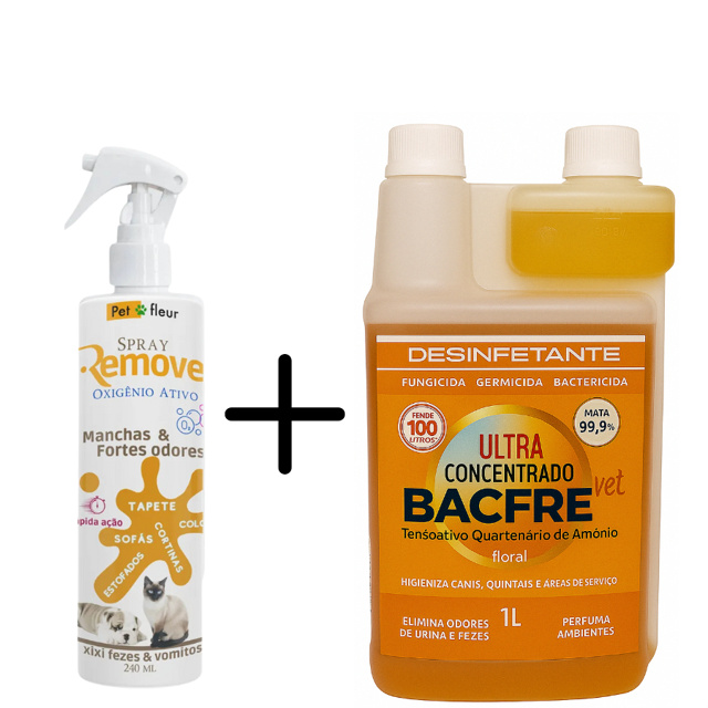 kit Desinfetante Bactericida Ultra Concentrado + Tira Manchas e Odores Enzimático - Xixi de Gato e Pets