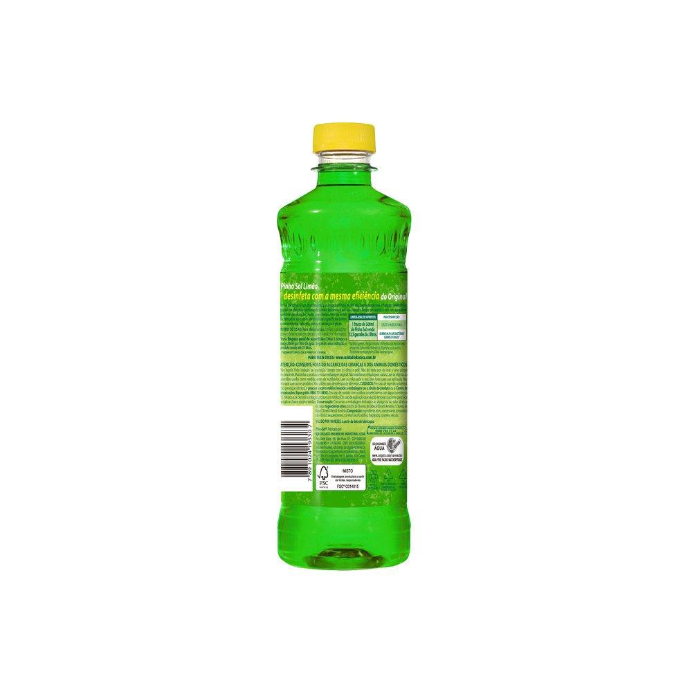 Kit Desinfetante Pinho Sol Limão 500mL com 5 unidades Pinho Sol® é um desinfetante de uso geral de alta qualidade: Elimina 99,9% das bactérias, germes e fungos Limpa, desinfeta e perfuma o ambiente Excelente rendimento: 500ml (rende 25 litros)