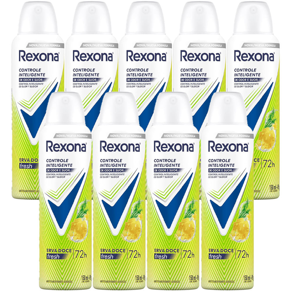 Kit Desodorante Aerosol Rexona Erva Doce Feminino 150ml - 9 Unidades