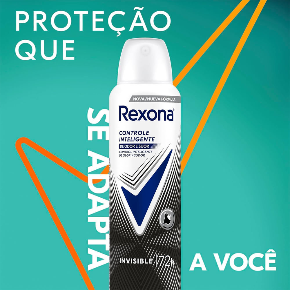 A exclusiva fórmula do Desodorante Aerosol Feminino Rexona Invisible garante 72 horas de proteção contra o suor e o mau odor ativado pelo movimento. O desodorante antitranspirante aerosol Invisible a mantém seca, refrescada, protegida e confiante para encarar qualquer situação. Desodorante feminino fácil de usar: agite e aplique nas axilas a não menos de 15 cm da pele A tecnologia desse desodorante feminino protege a roupa contra manchas brancas e amarelas Esse desodorante antitranspirante não contém álcool** e não afeta a camada de Ozônio, sua lata é de alumínio 100% reciclável e feita com energia elétrica 100% renovável O Desodorante Aerosol Feminino Rexona Invisible permite que você fique sempre protegido, não importa o que aconteça. Rexona não te abandona Mais uma vez Rexona se supera e relança sua linha de desodorantes com uma fórmula inovadora, o Desodorante Aerosol Feminino Rexona Invisible conta com 72 horas de proteção contra o suor e mau odor, ativado pelo movimento. Esse desodorante antitranspirante aerosol conta com a proteção anti manchas*, protegendo as suas roupas contra manchas brancas e amarelas. A nova e exclusiva fórmula de Rexona Invisible trabalha com um sistema de partículas menores e mais estáveis que formam uma barreira protetora mais resistente e duradoura contra a transpiração e o mau odor, mantendo você seco, fresco e protegido a cada novo movimento e por muito mais tempo. Com o registro de 16 patentes e mais de 300 testes técnicos, está comprovado que essa nova tecnologia antitranspirante entrega um nível de proteção contra o suor como nenhuma outra proposta regular já entregou antes. Sua tecnologia protege a sua roupa contra manchas brancas e amarelas. A lata usada no desodorante é feita de alumínio 100% reciclável, e o produto é feito com energia elétrica 100% renovável, não contém álcool** e não afeta a camada de ozônio. Experimente também outros produtos da linha de desodorantes aerosol feminino Rexona e se sinta sempre protegido durante qualquer atividade. Por que Rexona não te abandona. *Manchas brancas e amarelas nas roupas **Não contém álcool etílico