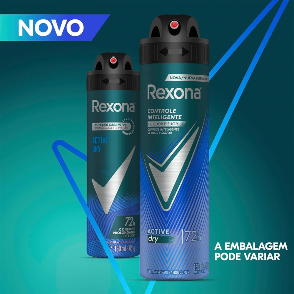 Kit Desodorante Aerosol Rexona Masculino Active Dry/Azul 150ml - 12 Unidades