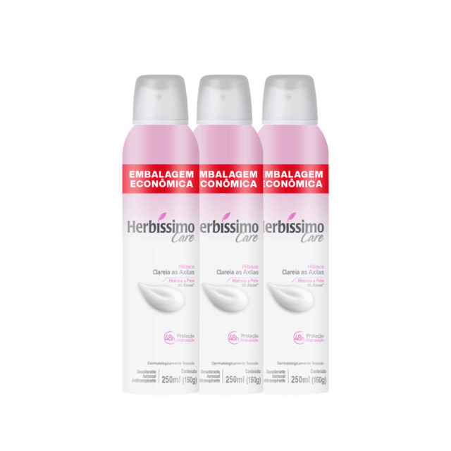 Kit Desodorante Aerossol Antitranspirante Herbissimo Care Hibisco 250ml - Embalagem Econômica (3 unidades)
