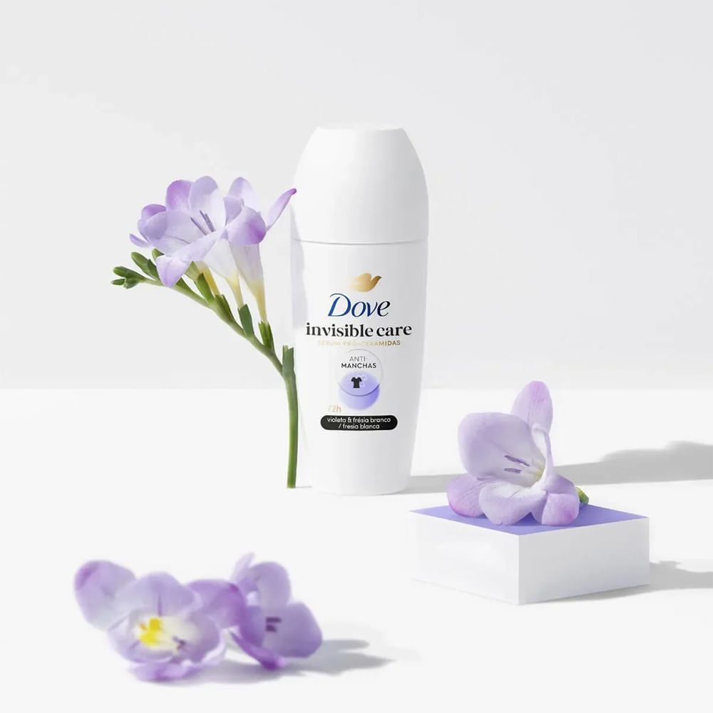 O Desodorante Roll On Dove Invisible Care reduz a quantidade de resíduos na roupa ao mesmo tempo que oferece hidratação e 48 horas de proteção intensa para as axilas. Você quer acabar com as manchas de antitranspirante nas suas roupas? A solução é o antitranspirante Dove Invisible Dry Roll-On, que garante 48 horas de proteção sem deixar manchas na roupa preta, branca ou colorida. Sua nova fórmula cuida da pele com ¼ de creme hidratante e o dobro de vitamina E. Experimente ter menos manchas nas roupas e mais cuidado com a sua pele!