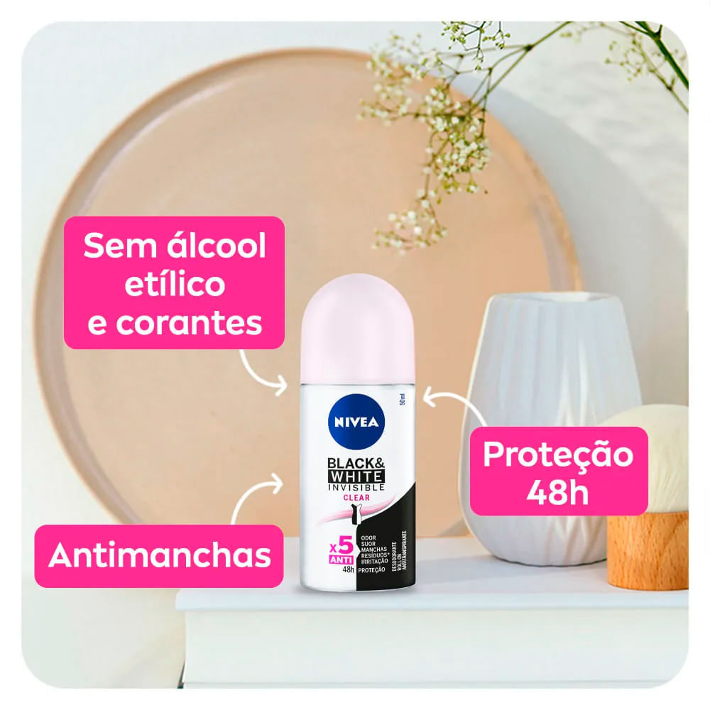 Kit Desodorante Roll On Nívea Invisible Black e White Clear 50ml - 2 Unidades