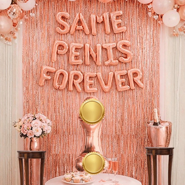 Kit Despedida de Solteira com 1/2 Cortinas Ouro Rose + Balão Frase Divertida +Balão Formato Homem