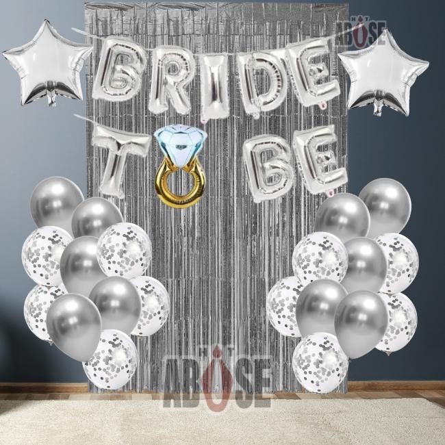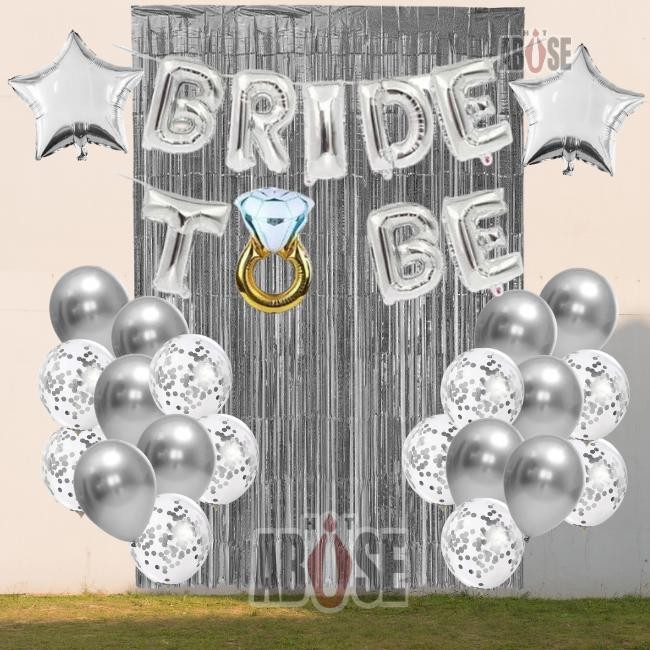 Kit Completo para sua Festa/Evento Despedida de Solteira/Chá de Lingerie - Bride To Be - Futura Noiva - na cor Prata. O que acompanha no kit? - 1 Kit Balão Bride to Be (Letras: 40x40cm - Aliança: 49x73cm) Prateado. - 1 Cortina Metalizada Prateada 2x1 metros - 2 Balões de Estrela 18'' Polegadas - 10 Balões/Bexigas Prateados Redondo 12'' Polegadas - 10 Balões/Bexigas Transparentes com Confetes Prateados 12'' Polegadas Cor: Prata Material: Polietileno e Folha Metalizada Kit Completo para sua festa com Painel e Balões ideal para decoração de Despedidas de Solteira, Chás de Cozinha, Chás de Lingerie, Festa de Casamento e muitos outros eventos! ENVIO RÁPIDO!