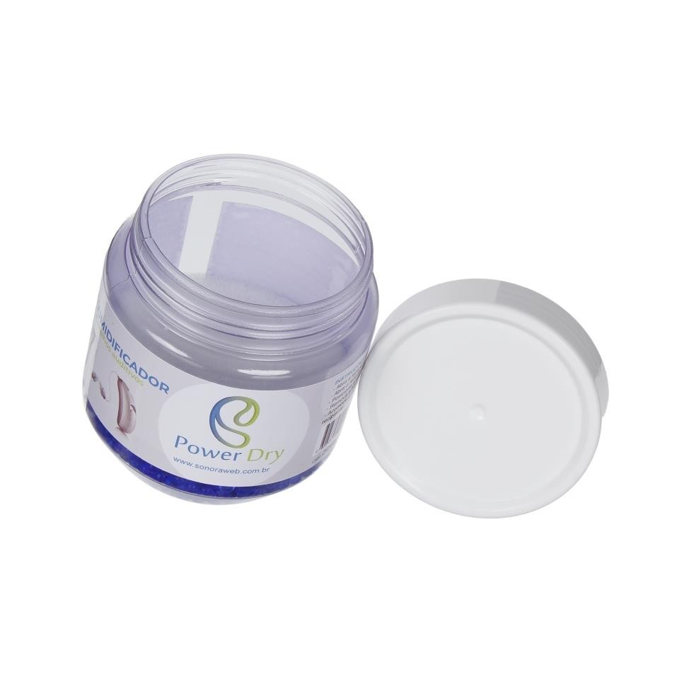 POWERDRY - Kit Desumidificador para Aparelho Auditivo Modelo: Kit Desumidificador ( Recipiente + Silica) PowerDry Aplicação: Aparelhos auditivos ou outros compatíveis a este produto. Marca: PowerDry Tipo: Descartável DESCRIÇÃO O KIT DESUMIDIFICADOR POWERDRY é Prético, discreto, resistente e fácil de usar. Foi desenvolvido especificamente para uso em aparelhos auditivos. Possui sílica gel que alteram a coloração a medida que a sílica absorve a umidade. A silica nova apresenta-se na cor azul e ao absorver a umidade altera sua cor para rosa claro. Ao apresentar a cor rosa, deverá ser substituido a sílica por um novo refil. O uso correto e conínuo deste produto conserva e aumenta a vida util de seu aparelho auditivo. CARACTERÍSTICAS TÉCNICAS Composição Sílica Gel e Aditivos Peso 50,00 gr Granulometria 4 a 8 mm Diametro 80 mm Altura 80 mm INSTRUÇÕES DE USO Abra a tampa do KIT DESUMIDIFICADOR POWERDRY, remova a espuma e o refil de silica. Abra cuidadosamente o refil de sílica azul e despeje todo o conteúdo dentro do recipiente. Apoie a espuma sobre a sílica azul. Remova a bateria do aparelho auditivo e deixe a gaveta de bateria aberta Insira os aparelhos auditivos ( com a gaveta da bateria aberta) sobre a espuma e feche bem a tampa do recipiente. Realizar a substituição da sílica sempre que ela se apresentar na cor rosa. Para sua maior comodidade temos disponível em nossa loja o refil de sílica azul POWERDRY para futuras subsituições. A sílica e seus compostos são inertes, não sendo conhecido nenhum efeito adverso ao meio ambiente. Não poluem e podem ser descartadas em lixo comum. Para prolongar a vida útil deste produto, mantenha o recipiente devidamente fechado. Em caso de ingestão acidental, procurar imediatamente um médico. Manter longe do alcance de crianças e animais. Armazenar em local fresco e seco. Não expor ao fogo. Não recarregar