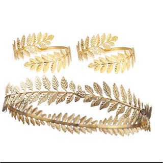 Kit Deusa Grega Tiara Redonda Folhas Finas e Bracelete