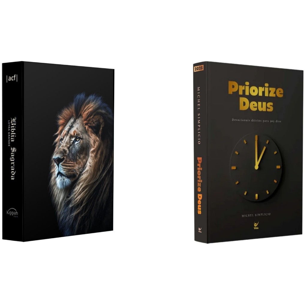Kit Devocional Priorize Deus 2025 + Bíblia Sagrada ACF | Letra Grande | Leão Alteza