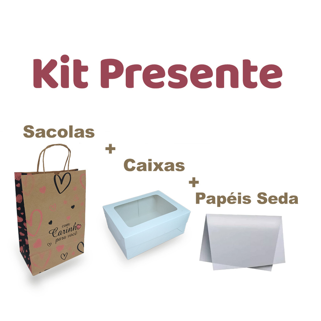 Kit Dia das Mães: Sacola Kraft + Caixa com Visor + Papel Seda | Embalagem 19x14x8cm para Presentes