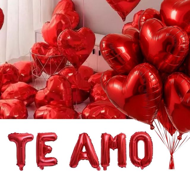 Kit Dia Dos Namorados 8 Balões Coração Metalizado 45cm Vermelho + Te Amo