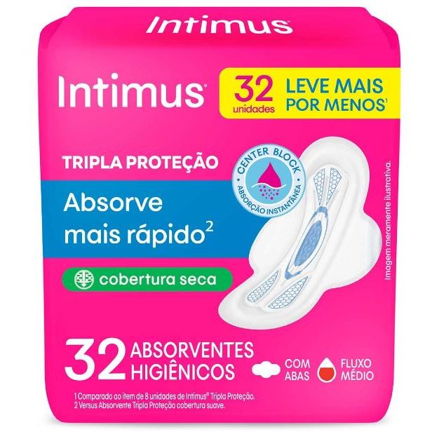 A Intimus® pode te ajudar a deixar a sua zona íntima mais seca e protegida! O Absorvente Tripla Proteção conta com Center Block, ajudando na absorção instantânea do seu fluxo. Sem contar que ainda absorve 2 vezes mais rápido e distribui por todo absorvente, prevenindo vazamentos. Perfeito para que você se sinta seca enquanto usa. E aí? Que tal conferir e comprovar? O Absorvente Intimus® Tripla Proteção tem controle de odores, é dermatologicamente testado e tem 100% de materiais respiráveis.