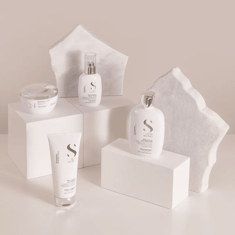 Kit Diamond hidrata, realça o brilho e proporciona nutrição. Kit de tratamento para cabelos opacos e sem vida. O Kit Contém: 1 – Shampoo SDL Diamond Illuminating 250ml - Alfaparf 1 – Máscara SDL Diamond Illuminating 200ml – Alfaparf 1 – Ampola Semi Di Lino Sublime Essential Oil 13ml Alfaparf Shampoo SDL Diamond Illuminating 250ml - Alfaparf Sobre o Produto: Shampoo iluminador,indicado para cabelos Normais. Oferece à fibra capilar suavidade e vitalidade, mantendo o brilho por muito tempo.. Delicado, sem sulfatos. Modo de usar: Dristribuir nos cabelos umidos e emulsionar. Enxaguar com cuidado. Repetir se necessário. Máscara SDL Diamond Illuminating 200ml – Alfaparf Sobre o Produto: Revitaliza intensamente a fibra capilar oferecendo aos cabelos suavidade, fluidez e brilho extremo. Indicado para cabelos Normais. Modo de usar: Aplicar após o shampoo. Deixar atuar durante 5 minutos. Enxaguar com cuidado Ampola Semi Di Lino Sublime Essential Oil 13ml Alfaparf Sobre o produto: Tratamento de brilho, para todos os tipos de cabelo. Reduz a textura aspera do fio, enriquece a fibra capilar e deixa os cabelos suaves. Os resultados são na primeira aplicação. Cabelos luminosos e saudáveis. Modo de Usar: Após o shampoo, aplique um flaconete nos cabelos úmidos. Deixe agir por alguns minutos, e enxágue cuidadosamente.