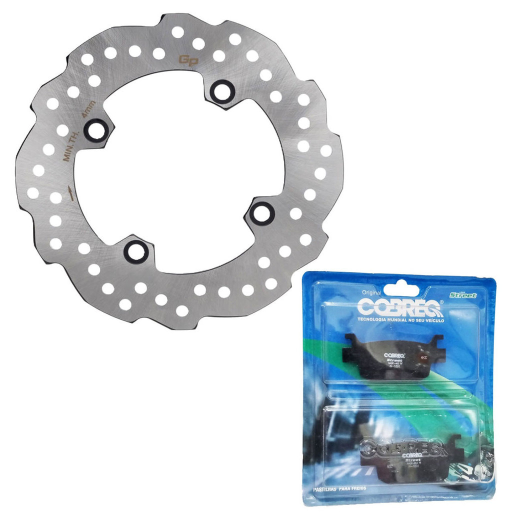 Kit Discos de Freio + Pastilhas Compatível com: HONDA ADV 150 ABS TODAS Conteúdo da Embalagem: 01 Disco de Freio Dianteiro GP7 01 Disco de Freio Traseiro GP7 01 Par de Pastilhas de Freio Dianteira Cobreq Street (orgânica) 01 Par de Pastilhas de Freio Traseira Cobreq Street (orgânica) Características dos Discos de Freio: - Produzidos em Aço Carbono de alta resistência ao desgaste; - Excelente frenagem e equilíbrio; - Discos ventilados que evitam o superaquecimento; - Frenagem mais complexa; - Aumenta a frenagem mesmo em terrenos úmidos; - Bom funcionamento do sistema de freios; - Qualidade Original; Especificações Técnicas das Pastilhas: - Qualidade superior comprovada- Alta durabilidade e performance- Rápida resposta de frenagem e baixo nível de ruído - Fabricado dentro do mais alto padrão de qualidade e segurança- Performance superior- Pastilha de alta duração- Maior segurança ao motociclista - Possui medidas originais- Melhor dissipação de calor e atrito com o disco de freio Importante Recomendamos que a instalação seja feita por profissional especializado e não nos responsabilizamos pelo mau uso do produto. Verifique, antes da compra, se as medidas das pastilhas são compatíveis com a da sua moto.