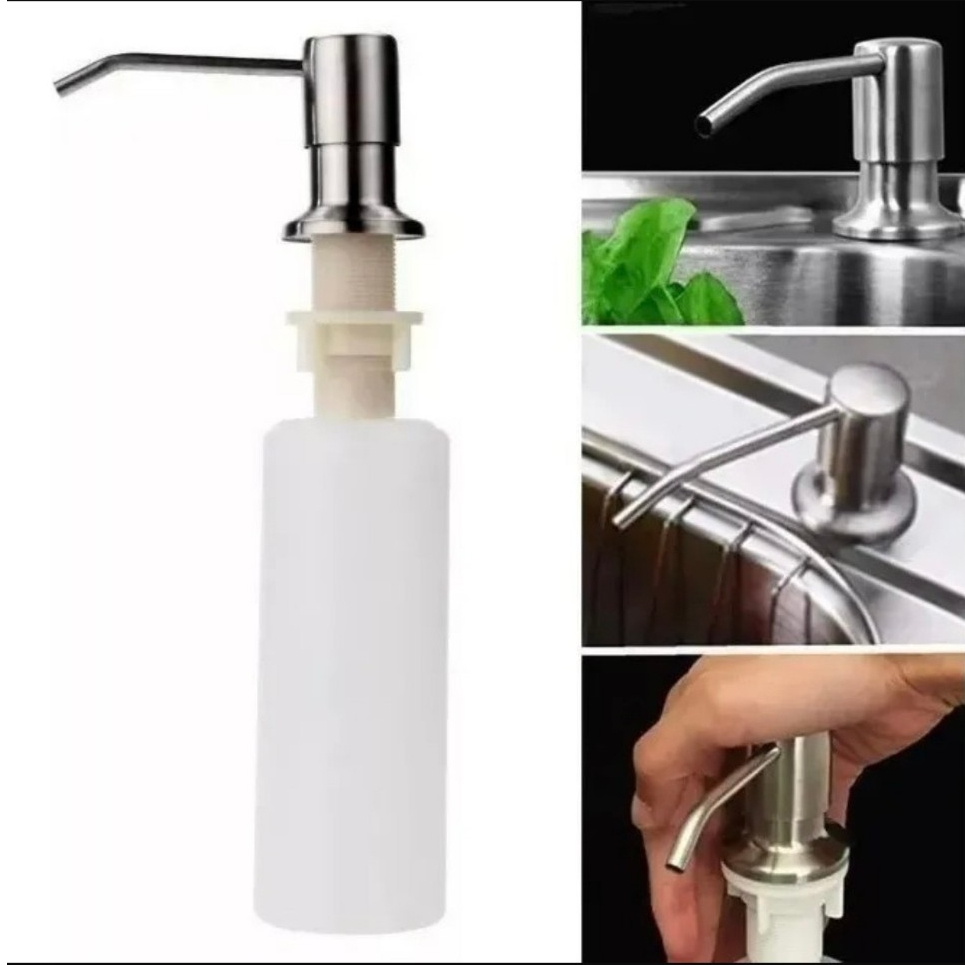 kit Dispenser Detergente Mais Lixeira Embutir Pia Granito Porta Sabonete Liquido Ambos Aço Inox