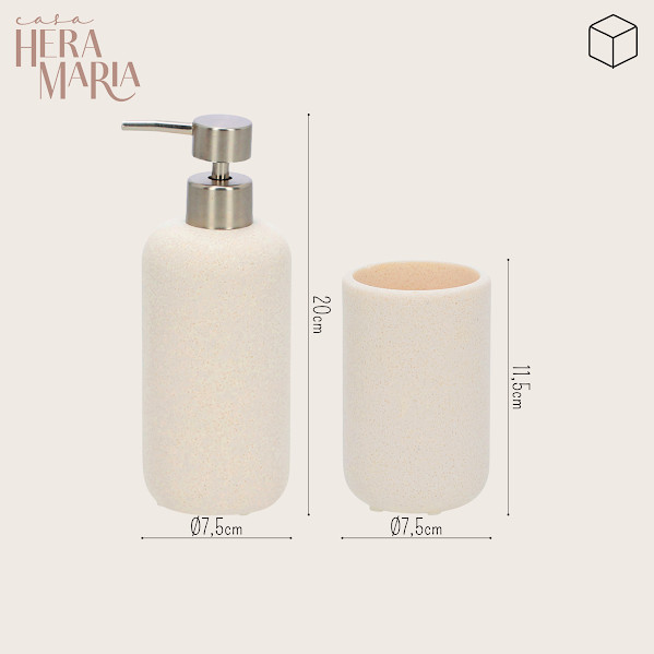 Este kit dispenser e porta-escovas é confeccionado em poliresina resistente, apresentando acabamento em textura quartzo que reforça um visual elegante e contemporâneo para o banheiro. O dispenser conta com bomba pump de plástico com ótima dispersão, garantindo uso prático no dia a dia, enquanto o porta-escovas possui formato arredondado e acabamento uniforme que combina facilmente com diferentes estilos de decoração. O design minimalista e a coloração neutra tornam o conjunto versátil e sofisticado, ideal para compor ambientes modernos com sutileza. A combinação de funcionalidade e estética harmoniza perfeitamente com bancadas, nichos e prateleiras, trazendo organização e charme ao espaço. O dispenser possui capacidade de 500ml, oferecendo ótimo aproveitamento para sabonete líquido ou higienizador, enquanto a superfície texturizada da poliresina reforça durabilidade e presença decorativa. Uma peça completa, prática e elegante para valorizar qualquer banheiro com um toque contemporâneo. CARACTERÍSTICAS / MEDIDAS: Capacidade Dispenser: 500ml Dimensões Dispenser: Ø7,5 x 20cm (P x L x A) Dimensões Porta Escovas: Ø7,5 x 11,5cm (P x L x A) Cor: Off White. Material: Poliresina e Plástico. CONTEÚDO DA EMBALAGEM: Contém: 01 Kit Dispenser E Copo Porta Escovas Decorativo Multiuso Em Poliresina. CUIDADOS: Evitar batidas. Não utilizar produtos químicos ou abrasivos na limpeza. Lavar com água e sabão neutro utilizando esponja macia, seguido de pano seco. Acesse nossa página de vendedor para conhecer todos nossos produtos CASA HERA MARIA. #Casaheramariadecor #homeheramaria #storeheramaria #kitbanheiro #Dispenser500ml #portaescovas #Poliresina #designquartzo #banheiromoderno #decorbanheiro #acessoriosbanheiro #kitdecorativo #casaheramaria DÚVIDAS: Se atente a todas as características do produto, olhe as medidas, nome da cor, não se baseie apenas nas fotos e sim não deixe de ver a descrição para evitar comprar um produto que não atenderá sua necessidade, precisando é só perguntar. AQUI SEU DINHEIRO É GARANTIDO: Compra 100% segura. Se o seu produto chegar danificado, garantimos a devolução do seu dinheiro.