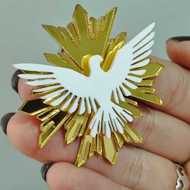 Kit Divino Espírito Apliques em Acrílico Espelhado Dourado e Branco Batizado Lembrancinhas