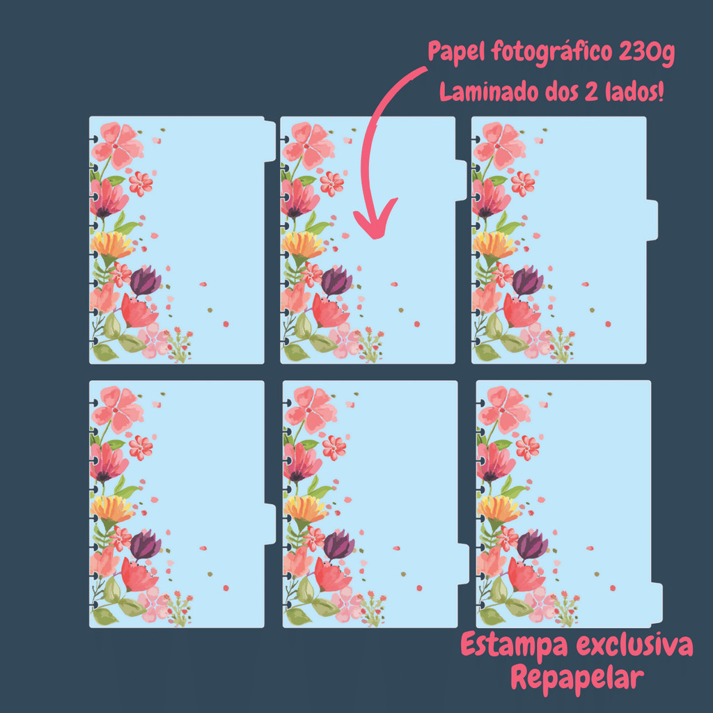 Kit Divisória para Caderno de Disco (Caderno Inteligente) - Floral
