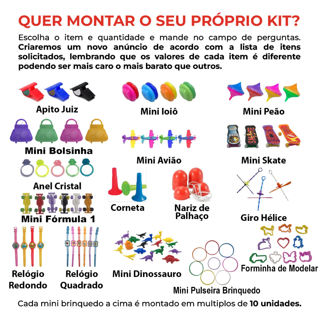 Kit Doces Brinquedos Festa 100 Uni. Sacolinha Surpresa Mini Brinquedos Lembrancinha Guloseimas Doces