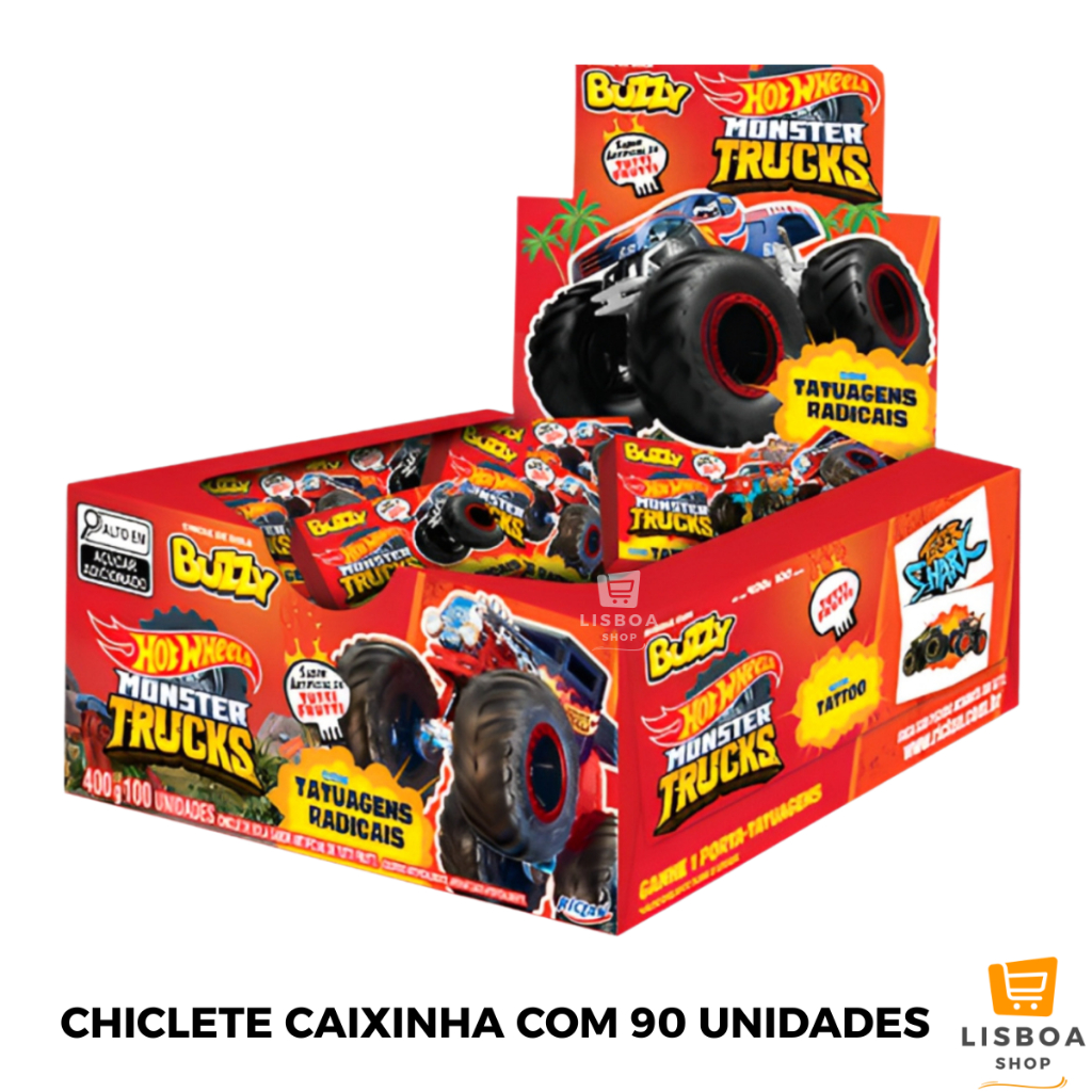 Kit Guloseimas da Hot Wheels Chicletes e Pirulitos! Surpreenda a criançada e deixe a festa da sua pequena ainda mais mágica e divertida com o nosso Kit de Guloseimas da Hot Wheels! Com pirulitos de uva com recheio de chicle e chicletes saborosos, perfeito para lembrancinhas, sacolinhas surpresa em festas temáticas da Hot Wheels, deixando a comemoração mais divertida e cheia de charme :) CARACTERÍSTICAS DO PRODUTO: Marca: Riclan Sabores: Tutti Frutti e Uva ITENS INCLUSOS NO KIT: 2 Pacotes de Pirulito Hot Wheels Uva 672g (com aproximadamente 24 unidades cada) 1 Caixinha de Chiclete Tutti Frutti 360g (com aproximadamente 90 unidades) TOTAL 3 UNIDADES PRAZO DE VALIDADE Pacotes tem no mínimo 8 meses de validade a partir do momento da compra. ---------------------------------------------------------------------------------------- DÚVIDAS FREQUENTES Qual o prazo de envio e postagem do produto? Assim que seu pagamento for confirmado enviamos todos os produtos dentro de um prazo de 24 horas, pedidos realizados aos sábados, domingos e feriados enviaremos no próximo dia útil. Prazo de entrega? Normalmente chegam os pedidos nas datas corretas que são disponibilizadas no calculador de frete. Mais informações sobre prazo de validade? Consulte-nos no chat Tipo de embalagens? Todos nossos produtos são muito bem embalados com carinho e cuidado para não chegarem danificados, não se preocupe. As mercadorias possuem nota fiscal? Sim, todos nossos produtos são vendidos com nota Fiscal. ---------------------------------------------------------------------------------------- Caso tenha mais algumas dúvidas, entre em contato pelo chat, que estamos à disposição será um enorme prazer te atender !