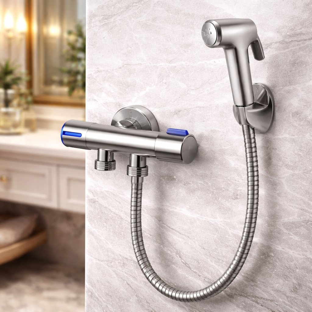 Kit Ducha Higiênica CROMADA Com Registro Dupla Saída De Água Multifuncional Prático