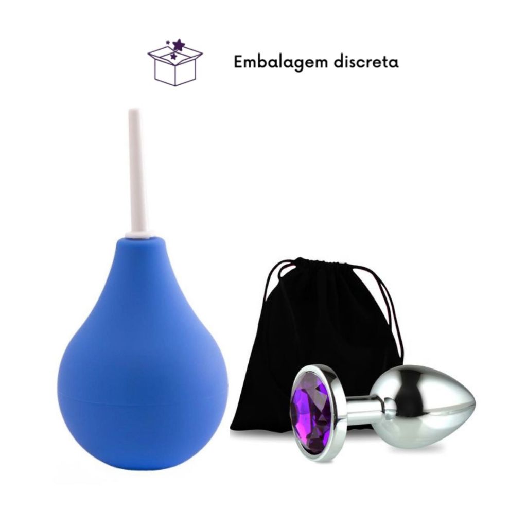 Envio Discreto. ***A cor dos produtos seram enviadas conforme a disponibilidade em estoque. Kit Contém: 01 Ducha Higiênica 160ml, 01 Plug Anal Tamanho P -*Ducha unissex para limpeza anal e vaginal, composta por 1 aplicador e bomba para sucção da água. O aplicador é confeccionado em plástico rígido e a bomba de sucção, em borracha macia. Discreta, confortável, fácil de limpar e muito simples de usar. Serve também como pulverizador de lubrificante. Modo de uso: Pressione a bomba de borracha para remover o ar e então coloque a ponta do aplicador em um recipiente com água ou o líquido que preferir. Ao manter a ponta submersa relaxe a pressão na bomba até preenchê-lo completamente. Insira o aplicador no ânus ou vagina e suavemente aperte a bomba. Material: PVC e ABS. Medidas: 160ml. Higienização: Lavar com água e sabão neutro antes e após o uso, seque com papel toalha ou deixe secar naturalmente. Depois de seco guarde na embalagem original. Não compartilhar e não expor a temperatura superior a 50°C. Cuidados: Higienize sempre antes e após o uso; Mantenha fora do alcance de crianças; Manter ao abrigo do calor e luz excessiva; Após o uso, guardar em uma embalagem de plástico, não enrole em papel. Recomendações: Recomenda-se o uso de lubrificante. ------------- -* Plug Anal este é um acessório erótico diferente que serve como estimulador anal em brincadeiras fetichistas, principalmente em jogos de dominação e submissão. É ideal para dilatação anal, pois sua espessura é diferente em todo seu comprimento. Modo de uso: Lubrificar antes da penetração. Material: Aço inoxidável. Medidas: 7 cm de comprimento, 2,8 cm de espessura (medidas aproximadas). Higienização: Lavar com água e sabão neutro antes e após o uso, seque com papel toalha ou deixe secar naturalmente. Depois de seco guarde na embalagem original. Não compartilhar e não expor a temperatura superior a 50°C