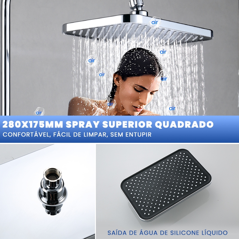 ✨ Novo Kit Ducha Luxo 4 em 1 – Conforto, Estilo e Praticidade no Seu Banho! Transforme sua experiência de banho com o novo modelo 4 em 1 em aço inoxidável, projetado para unir elegância, durabilidade e funcionalidade em um único produto. Este kit combina: ✅ Chuveiro superior extragrande (33 cm de largura) para um banho relaxante e envolvente ✅ Ducha manual ergonômica (27 cm de altura) ideal para lavagem direcionada e higiene diária ✅ Torneira mista para água fria e quente, permitindo controle perfeito da temperatura ✅ Saída adicional prática para diversas utilizações 🔹 Dimensões inteligentes: altura ajustável de 74 a 110 cm, base resistente de 37 cm, design otimizado para banheiros modernos 🔹 Material premium: aço inoxidável polido, resistente à corrosão e de fácil limpeza 🔹 Instalação na parede, economizando espaço e garantindo um visual clean e sofisticado 🔹 Alta pressão para um banho mais revigorante e eficiente 💎 Por que escolher este kit? Porque ele une design de luxo, tecnologia moderna e versatilidade para oferecer não apenas um chuveiro, mas uma estação completa de banho. É perfeito para quem valoriza conforto, estilo e qualidade duradoura.