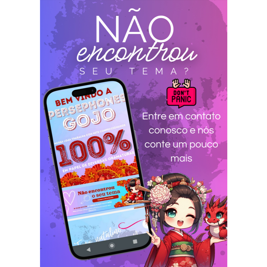 AO REALIZAR O PEDIDO DEIXE O NOME E A IDADE NO CAMPO DE OBSERVAÇÃO DO PEDIDO! Por gentileza, tenham ciência na hora da compra que esses kits são confeccionados por pedido, então eles possuem um prazo de confecção. Se você comprou antes das 11hrs, ele será enviado até o final da tarde portanto INFORME O NOME NA OBSERVAÇÃO DO PEDIDO. Se o comprou na sexta ou sábado, ele será postado na segunda, no domingo ele será encaminhado na terça. O kit festinha SUSANOO inclui: 2 Displays de mesa de 20 cm Topo de bolo personalizado - 8 Bandeirolas com o nome do aniversariante (bandeirolas a mais são $1,50) O kit festinha APOLO Displays de 20cm inclui: 3 Quadros Decorativos (papel fotográfico 20x30cm 180g) 2 Displays de mesa de 20 cm Topo de bolo personalizado O kit festinha APOLO Displays de 30cm inclui: 3 Quadros Decorativos (papel fotográfico 20x30cm 180g) 2 Displays de mesa de 30 cm Topo de bolo personalizado O kit GRÉCIA inclui: - 2 Quadrinhos Decorativos (papel fotográfico 20x30cm 180g) - - 2 displays de mesa de 20 cm - 2 displays grandes de 30 cm - - Topo de Bolo Personalizado O kit GRÉCIA +DISPLAYs inclui: - 2 Quadrinhos Decorativos (papel fotográfico 20x30cm 180g) - - 6 displays de mesa de 20 cm - - Topo de Bolo Personalizado O kit Ártemis inclui: 3 Quadros Decorativos (papel fotográfico 20x30cm 180g) 2 Displays de mesa de 30 cm 2 Displays de mesa de 20cm 1 Display Central ou Topo de bolo (escolha do cliente) O kit Hermes inclui: 3 Quadros Decorativos (papel fotográfico 20x30cm 180g) 6 Displays de mesa de 20cm 1 Display Central ou Topo de bolo (escolha do cliente) O kit Ares inclui: 4 Quadros Decorativos (papel fotográfico 20x30cm 180g) 2 Displays de mesa de 30 cm 2 Displays de mesa de 20cm 1 Display Central ou Topo de bolo (escolha do cliente) O kit Odisseia inclui: - 3 Quadrinhos decorativos(papel fotográfico 20x30cm 180g) - 2 displays grandes de 30 cm - 4 displays médios de 20 cm - Topo de Bolo - 8 Bandeirolas com o nome do aniversariante (bandeirolas a mais são $1,50) O kit Fedra inclui: - 8 displays médios de 20 cm - Topo de Bolo - 8 Bandeirolas com o nome do aniversariante (bandeirolas a mais são $1,50) O kit Hades inclui: -6 Quadros Decorativos (papel fotográfico 20x30cm 180g) --2 Displays de mesa de 30 cm -4 Displays de mesa de 20cm --Topo de bolo O kit Perséphone's inclui: 12 Quadros Decorativos (papel fotográfico 20x30cm 180g que formam uma imagem de 90x80cm) 6 Displays de mesa de 20cm 1 Display Central ou Topo de bolo (escolha do cliente) Que tal deixar sua decoração ainda mais cheia? O kit de Lembrancinhas Teseu com 25 itens super lindos pode ser perfeito para a sua festa em casa! O kit Teseu inclui: 10 caixinhas Porta Bis 5 caixinhas LunchBox 3D 5 sacolinhas personalizadas 13x10,5x4cm 5 caixinhas Milk 3D Detalhes do Produto: -O kit é produzido em papel fotográfico High glossy de 180gr. -Os suportes são feitos de papel cartão 230gr. -Os Quadros possuem 20x30cm de medida, e juntos formam um mural de acordo com a quantidade: Apolo, Ártemis, Hermes e Odisseia = 30x60cm Grécia = 30x40cm Ares = 30x80cm ou 60x40cm (depende da forma que você pretende montar) Hades = 60x60cm Perséphone's = 90x80cm (um mural montável com 12 imagens, pense nele como um quebra cabeça) - NENHUMA parte deste kit é produzida em material acrílico ou MDF. - Compreenda a palavra pôster não é utilizada porque consiste em uma imagem no tamanho A2 (cartaz), por isso a palavra QUADRINHOS e o tamanho e material descrito em vários lugares desta descrição. Observações Relevantes: - Não nós responsabilizamos por atrasos devido ao correio e portanto não fazemos reembolso por este motivo. Somos uma loja física em Sorocaba, então tenha ciência de pedir com antecedência para que não ocorra atraso! - Não aceitamos devoluções de itens abertos e avariados, afinal nosso produto é personalizado para cada cliente. - Ao adquirir nosso produto nós envie o nome e idade do aniversariante via chat após o pagamento (se o kit escolhido incluir quaisquer um dos itens: bandeirolas, topo de bolo, mural de 6 quadros decorativos ou adesivos). - Esse kit não terá qualquer alteração a pedido do cliente na arte do tema escolhido. - REAFIRMAMOS QUE NENHUMA PARTE DESTES KITS É FEITA EM MATERIAL MDF.
