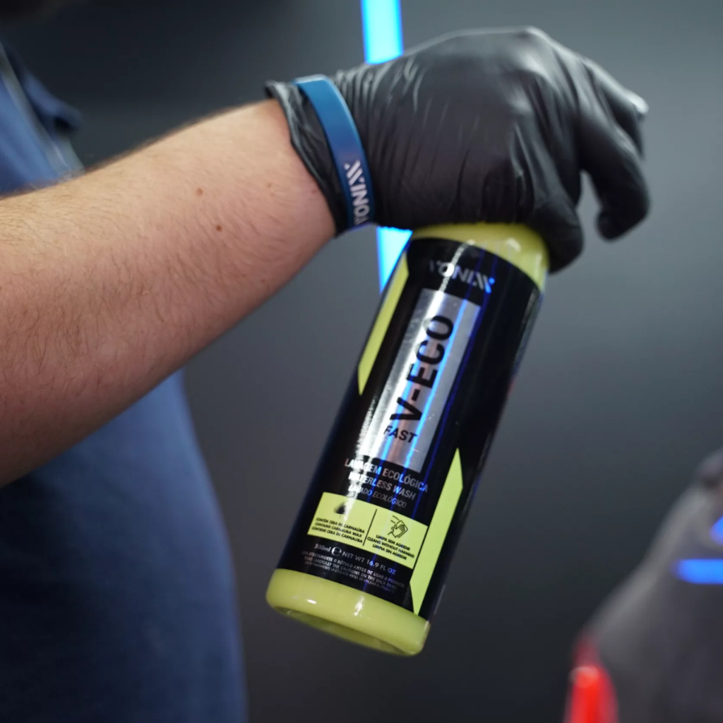 KIT CONTÉM: V-ECO FAST VONIXX 500ML 2 TOALHA FELPUDA 40X40 410GSM VONIXX ---------------------------------------------------------------------------- V-ECO FAST LAVAGEM ECOLÓGICA DE VEÍCULOS VONIXX 500ML DESCRIÇÃO: V-ECO FAST é um produto para lavagem ecológica de veículos, biodegradável e ecologicamente correto. Contém em sua composição tensoativos, solventes ecológicos e cera de carnaúba. MODO DE USAR: 1. Pulverizar em área não superior à 60cm x 60cm 2. Remover a sujeira com toalha ou pano de microfibra, realizando movimentos laterais 3. Reaplique o produto na mesma superfície em quantidade menor e realize o acabamento final 4. Com auxílio de microfibra limpa e seca até obter o resultado desejado. Observação: Em caso de manchas, repetir a operação.