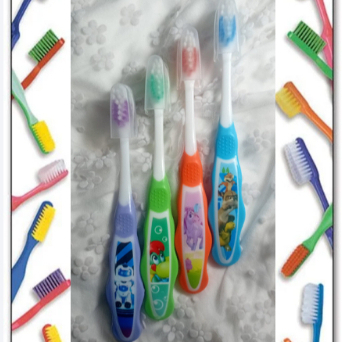 kit econômico 4 escovas de dente infantil com protetor na ponta cerdas macias com desenhos decorativos