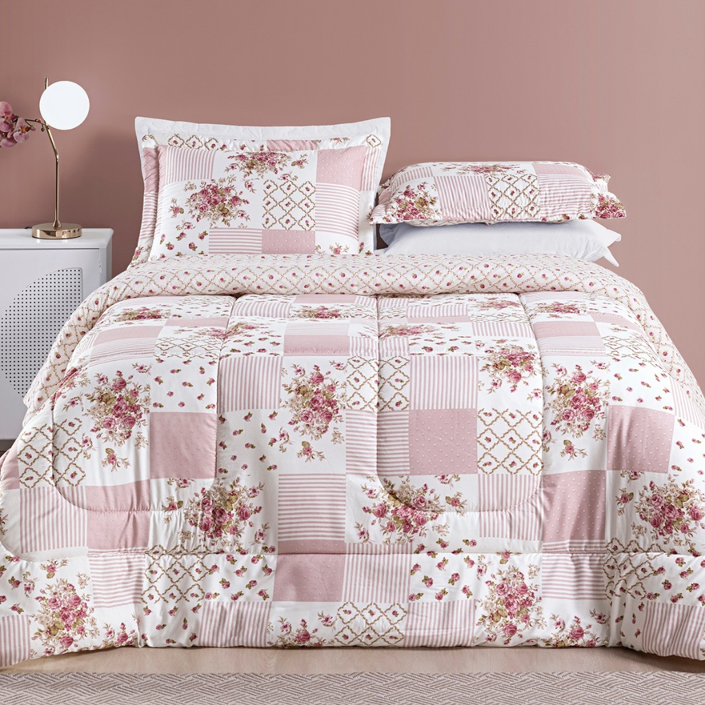 Kit Edredom Dupla Face Microfibra com Porta Travesseiros Estampado - 3 Peças