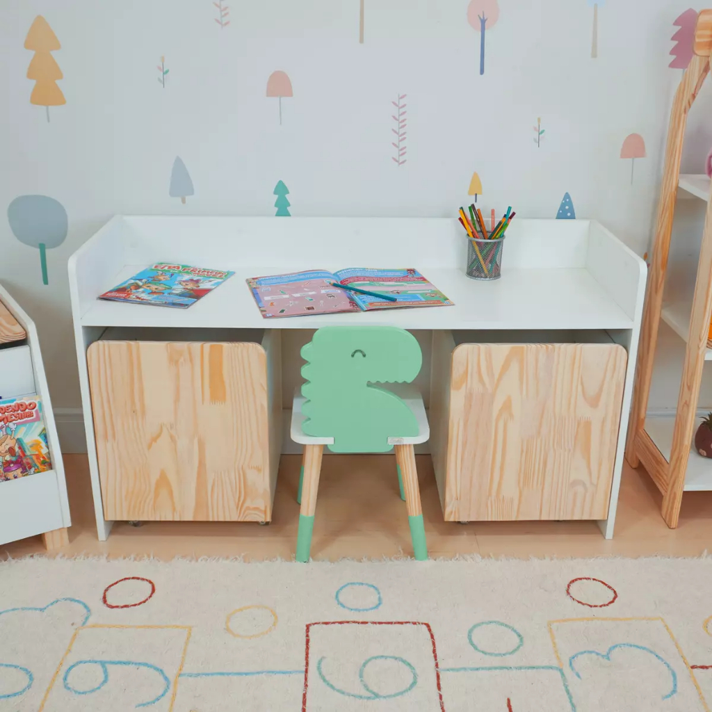 Kit Educativo Escrivaninha Infantil Bancada Organizadora Grande Madeira Dinossauro