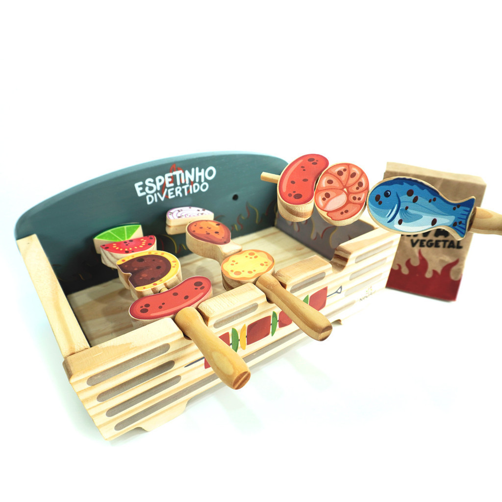 Kit Educativo Mini Churrasqueira Madeira Brinquedo Pedagógico Infantil