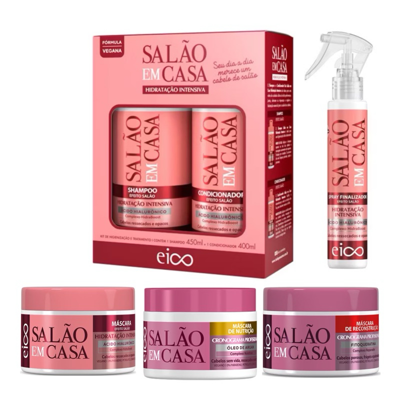 kIT EICO CRONOGRAMA CAPILAR PARA UM TRATAMENTO COMPLETO DESDE OS CABELOS NORMAIS OU ATÉ MESMO QUIMICAMENTE TRATADOS KIT CONTÉM: SHAMPO CONDICIONADOR HIDRATAÇÃO NUTRIÇÃO RECONSTRUÇÃO